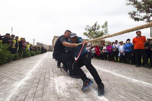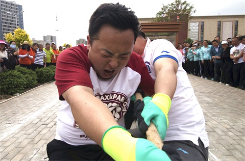 隨著一聲哨響,拔河比賽正式開始,比賽中參賽隊(duì)員雙手緊握長(zhǎng)繩,大家都鉚足了勁兒、全力拼博,隨著長(zhǎng)繩子上紅色錘線的左右移動(dòng),場(chǎng)外加油聲、吶喊聲、歡呼聲連成一片,場(chǎng)面蔚為壯觀。