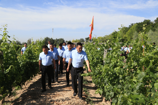 為了深入落實習(xí)近平總書記對寧夏賀蘭山東麓葡萄酒產(chǎn)業(yè)發(fā)展的指示精神,銀川城建集團(tuán)黨委書記、董事長雷光新帶領(lǐng)全體黨員走進(jìn)賀蘭山東麓新牛酒莊葡萄種植園考察,大力促進(jìn)葡萄酒事業(yè)發(fā)展。